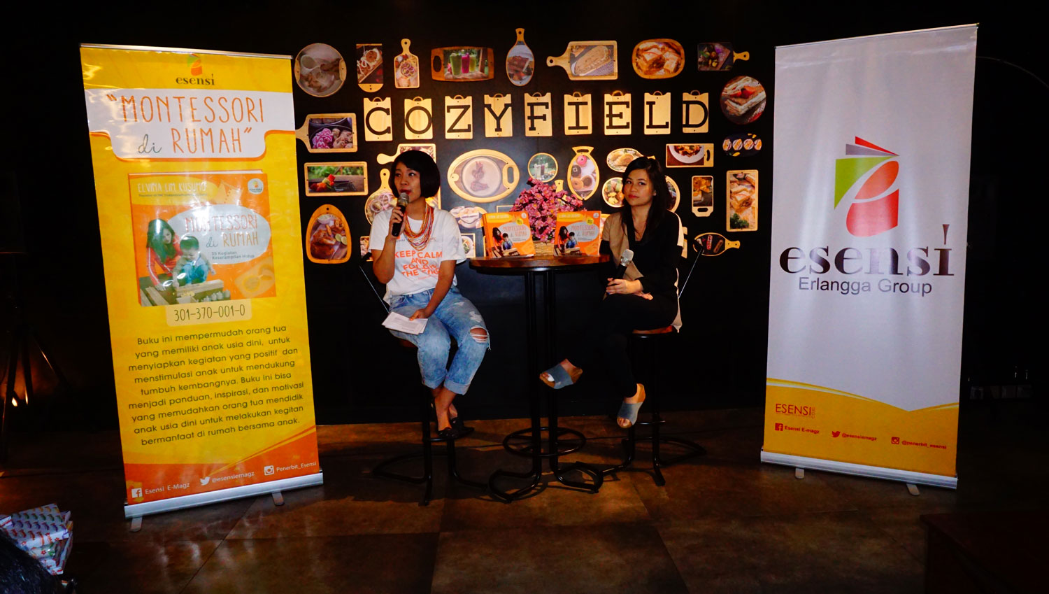JAKARTA- Sabtu, 25 Maret 2017, bertempat di Cozyfield Gramedia Pondok Indah Mall, Jakarta Selatan, Esensi, imprint dari Penerbit Erlangga menyelenggarakan acara “Mini Talkshow dan Book- Signing Montessori di Rumah bersama Elvina Lim Kusomo”. Elvina Lim Kusumo adalah penulis buku Montessori di Rumah: 55 Kegiatan Keterampilan Hidup, terbitan Esensi.